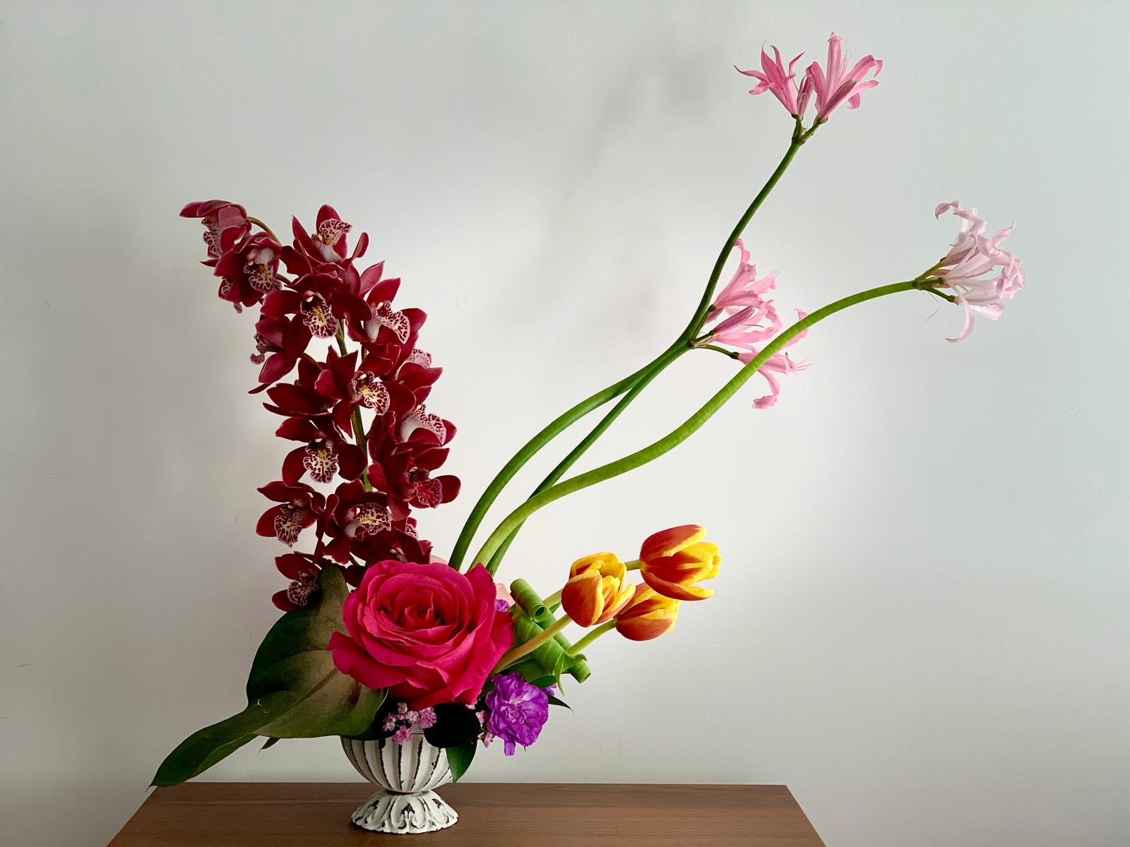 For some years, I am amazed by the works of Dr. Solomon. In 2020, I start my floral journey in Solomon Bloemen flower school. Teacher Bonnie’s delicate craftsmanship with extreme patience helped me all the way from fundamental knowledges to Dr. Solomon’s professional courses such as Certified Floral Designer, Wedding and Sympathy. Happy to keep learning with chances like exhibitions, competitions and workshops. Happy me!