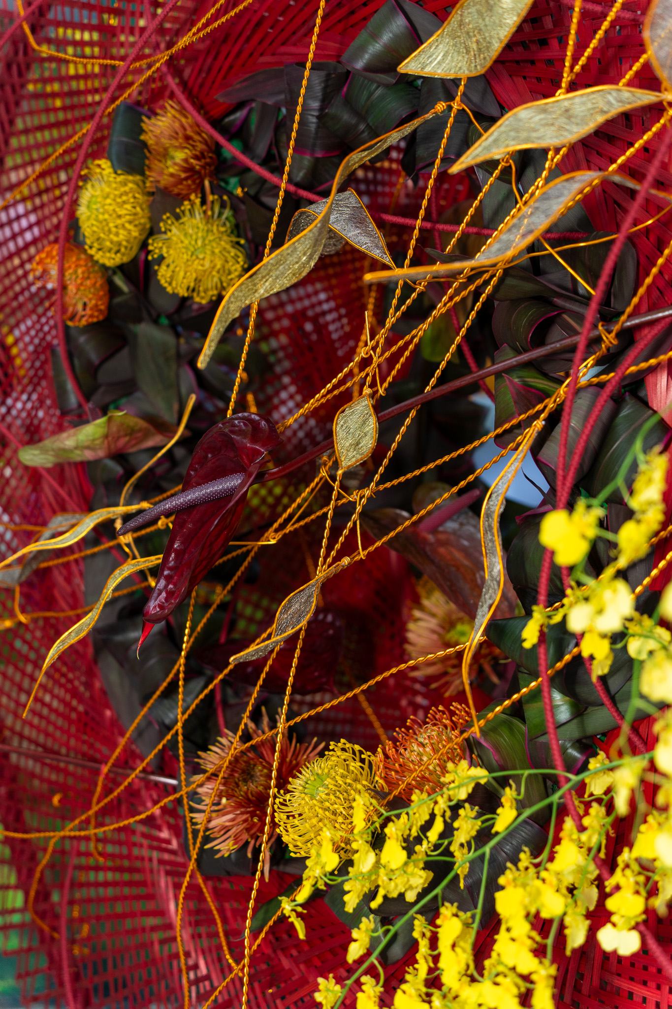 時光流轉不息,而大自然卻以它的方式永恆循環。四季更新,各有植物依時生長,為天地喧染上不同的情緒與色彩。 秋天,金風送爽,來色漸染,一切都沈浸在溫暖而詩意的色調裏,就像是一封寫給大地的情書。作品以秋天作為設計題材,用上合時花與葉材,在金黃、赭石與暗紅之間,交織出深邃而溫柔的秋日印象。加上改變植物原有的形態,以線條去訴說季節變換的故事,為作品注入屬於秋天的沈靜與浪漫。