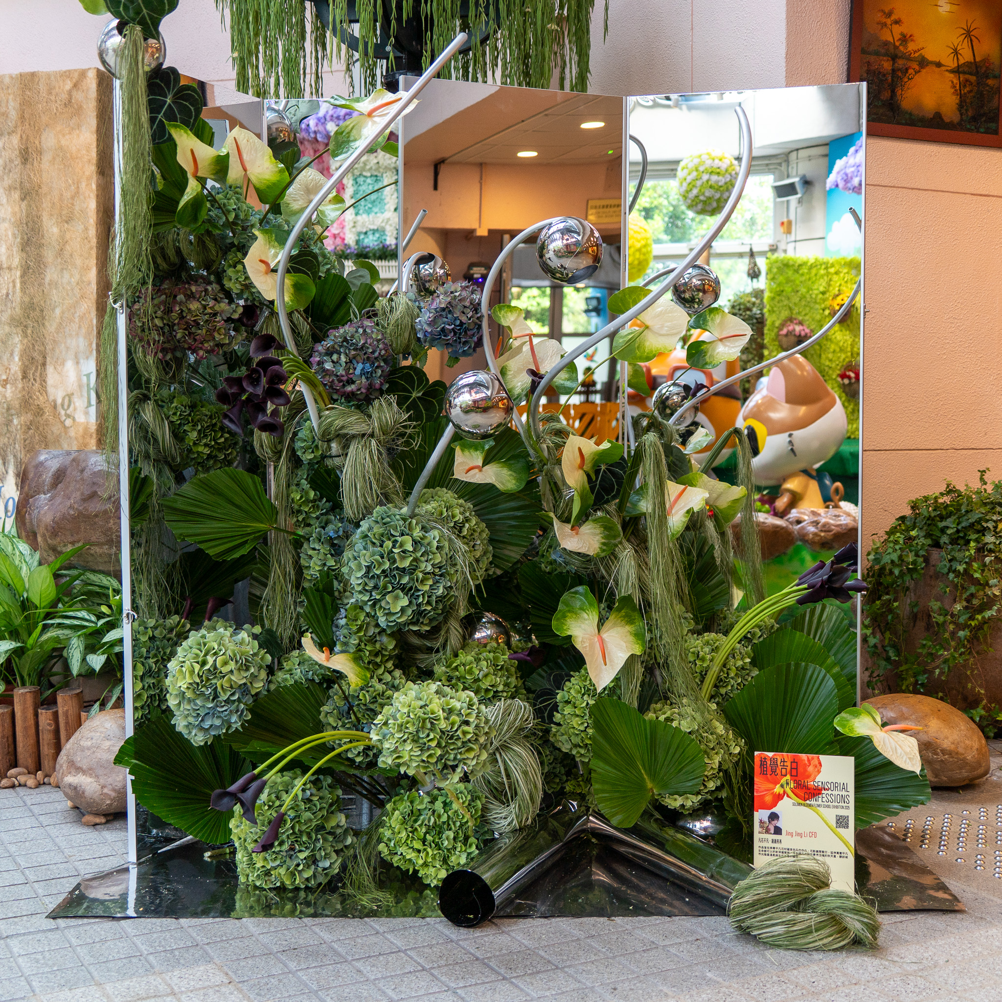 作品旨在探尋平凡花材蘊含非凡生命力,花影鏡間繁衍,延伸寓意平凡生命都可以折射深邃意境。冷色調花卉映在香港溫暖的秋天里,靜訴城市光陰里溫柔與生生不息的輪回。